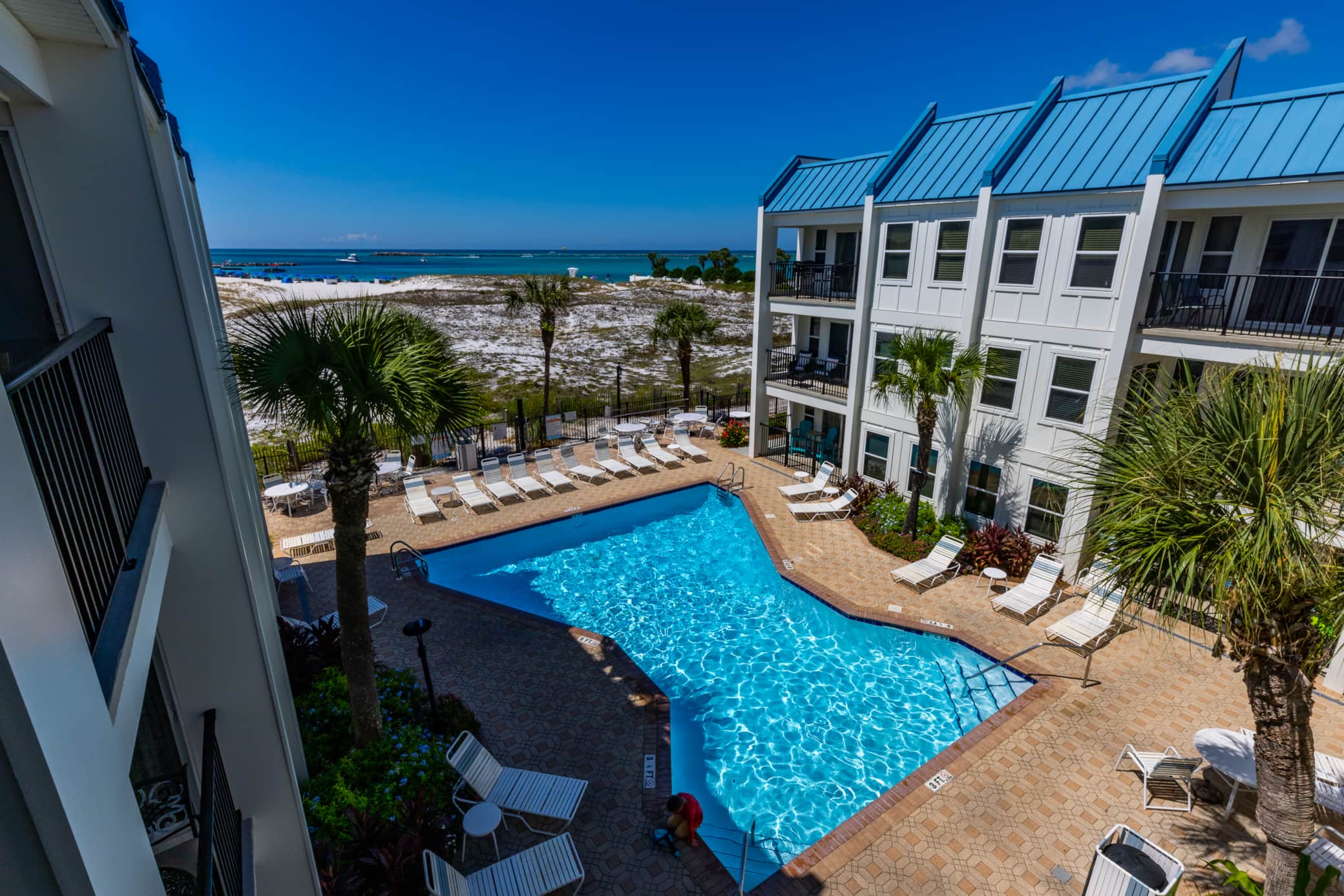 This unit features beach access right from the pool area. It is easy to come and go from the beach multiple times a day with all of your gear. Put the kids down for a nap and enjoy the pool just a few feet away. The ocean water is a 690' walk from the pool through the sand.